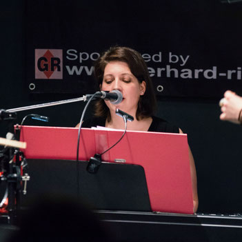 Neben unserem Dominik Initiator und Gründerin der Band. Die bescheidene Frau am E-Piano zog über lange Zeit hinter den Kulissen geschickt die Fäden und brachte mit ihrer charmanten Bestimmtheit immer wieder Ordnung in unseren verrückten Haufen.