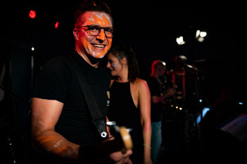 Als Gründungsmitglied Mann der ersten Stunde und unser Virtuose an den Gitarrensaiten. Macht alles mit links, hat immer einen Masterplan in der Tasche und träumt nach wie vor von einer Robinson-Club-Tour mit der Band.